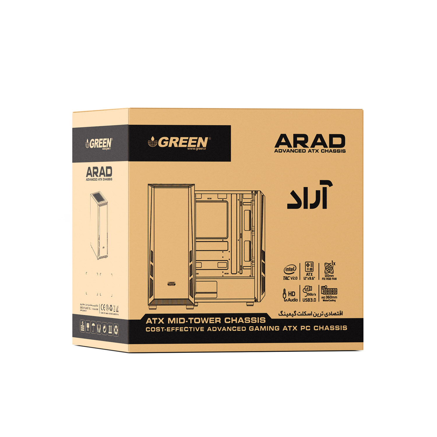 کیس آراد / ARAD یکی از مدرن ترین کیس های اقتصادی گیمینگ (مخصوص بازی) حال حاضر گرین محسوب می شود. اسکلت مستحکم و تقویت شده، فضای داخلی گسترده و بهینه سازی شده جهت میزبانی از جدیدترین سخت افزارهای روز در کنار کاور کناری از جنس شیشه حرارت دیده، یک عدد فن FRGB 120mm و البته قیمت فوق العاده مناسب و رقابتی از مهم ترین خصوصیات این کیس ارزشمند خانگی / گیمینگ محسوب می شوند.